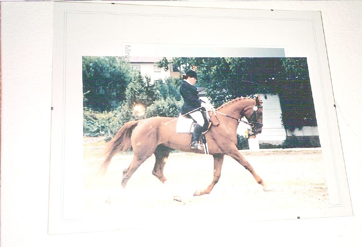 Ich war mehr im Stall als zu Hause, hier auf Joop,meiner Reitbeteiligung, bei einem Turnier zu sehen